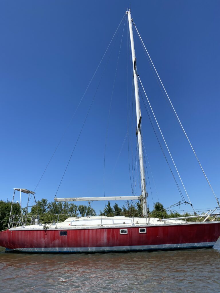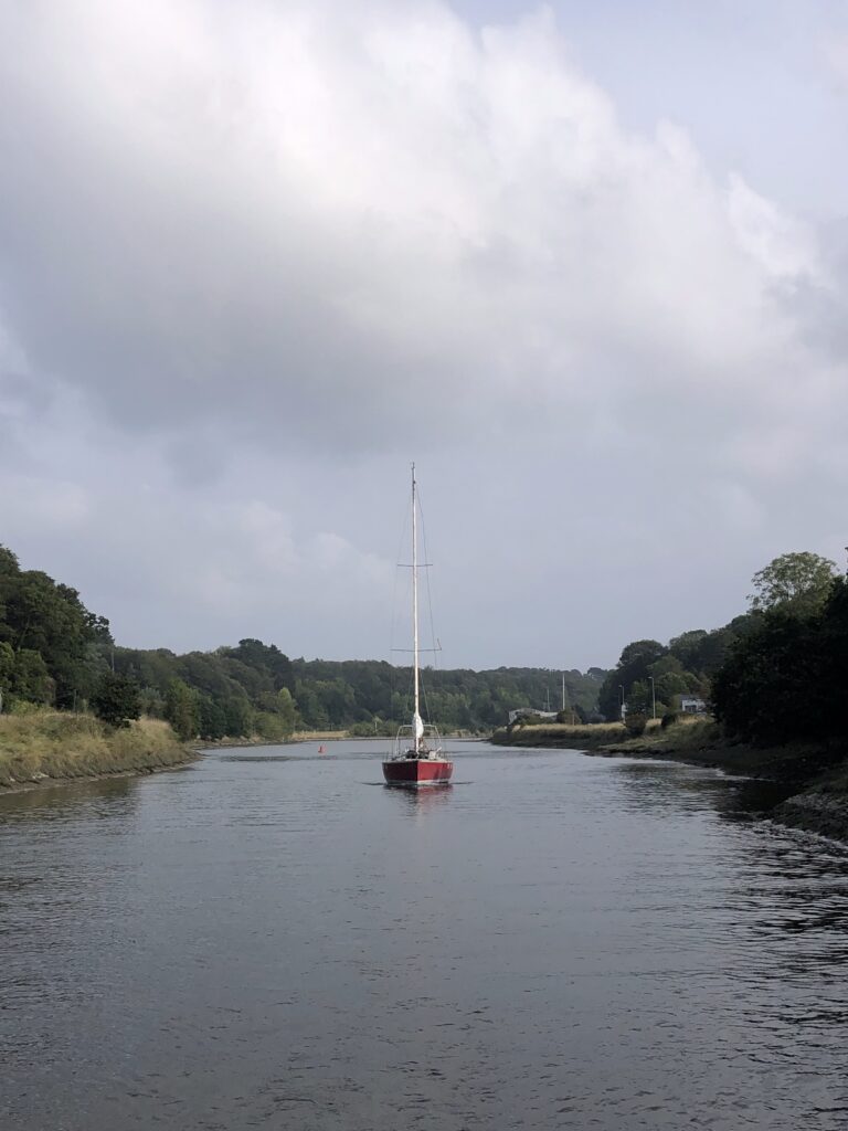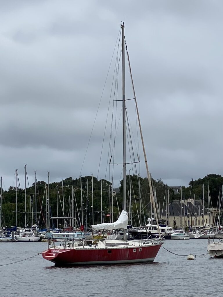 Le 28 juillet 2024, Dimitri visite un voilier, un Sun Fizz rouge de 1981, amarré dans le fleuve de la Vilaine en Bretagne.