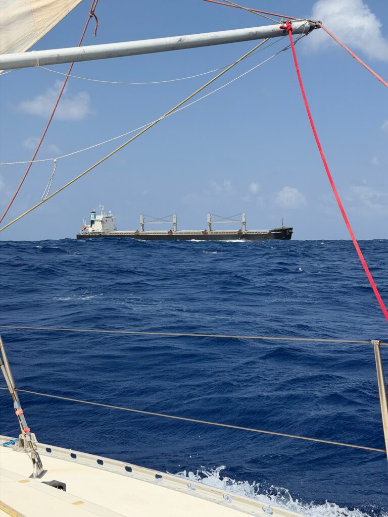On est passé.e.s dans une zone où les bulletins météo sont émis par le Brésil, preuve qu’on se rapproche de plus en plus, en faisant plus de 100 milles nautiques par jour (moyenne journalière : 135 milles nautiques).