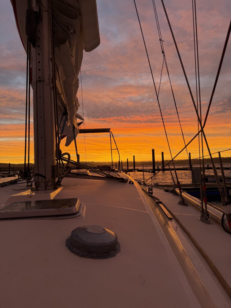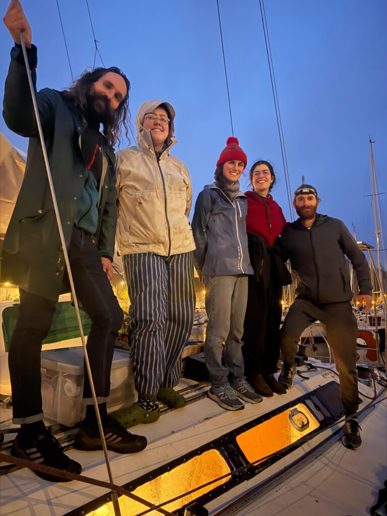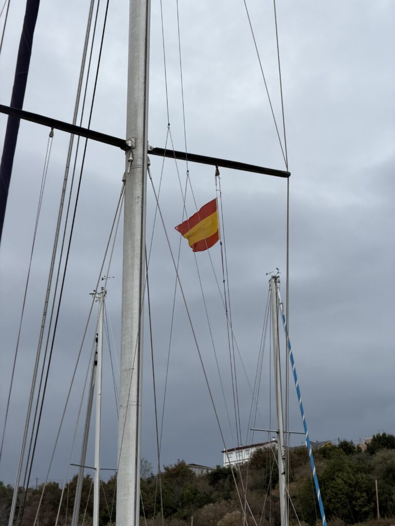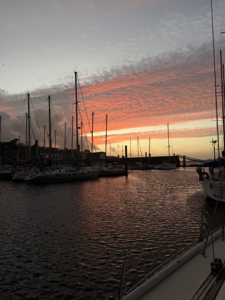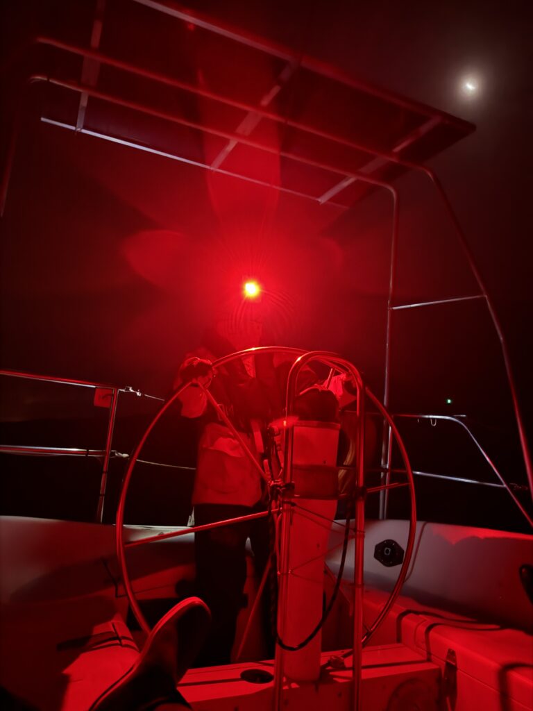 On voit la lumière du mât de loin, et progressivement des petites lumières rouges supplémentaires : nos mousses ! L’approche est compliquée mais on arrive enfin à s’accrocher au bateau et retourner à bord. Il est maintenant 4h30 du matin. Tout le monde est si heureux quand le moteur de Sirius démarre enfin. Cap sur le port de Santa Cruz, où on s’amarre fatigué.e.s un peu plus tard sans encombre. Ça y est on touche terre. On dégonfle l’annexe en la laissant étalée là puis on s’enfile une tartine réconfortante de chocolat. Il est 7h, on peut aller faire dodo.
