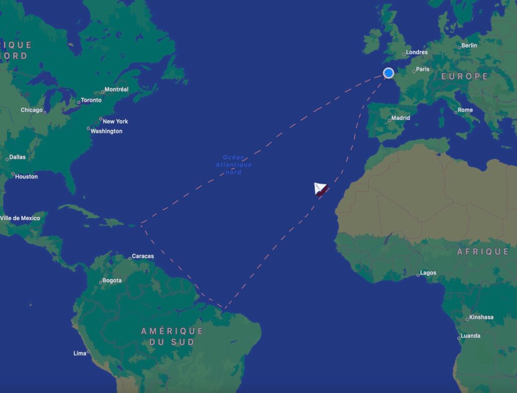 Partir depuis Morlaix, passer l’écluse et la rivière de Morlaix pour contourner la Bretagne et traverser le golfe de Gascogne, en direct jusqu’aux Canaries. Des îles des Canaries, nous continuerons jusqu’aux îles du Cap Vert, avec une bouée météo à larguer entre les îles, pour le compte de Météo France. Ensuite, nous suivrons le courant des alizés pour travers l’océan Atlantique direction le Brésil : vers la côté nord du pays, et l’Amazonie. Après des pérégrinations sur place, et en cabotant, nous rejoindrons la Guyane, puis les îles des Caraïbes, pour reprendre la route du retour courant du mois d’avril. Sur la traversée retour, nous nous arrêterons aux Açores quelques temps, pour revenir en France début juin.